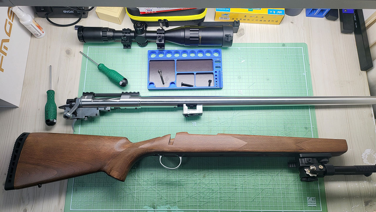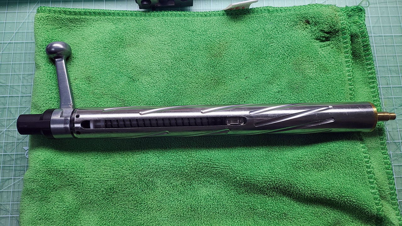 위 사진상에 드라이버가 끼워져 있는 볼트와 가운데 볼트만 제거하면 바렐과 바디(스톡)가 분리됩니다.