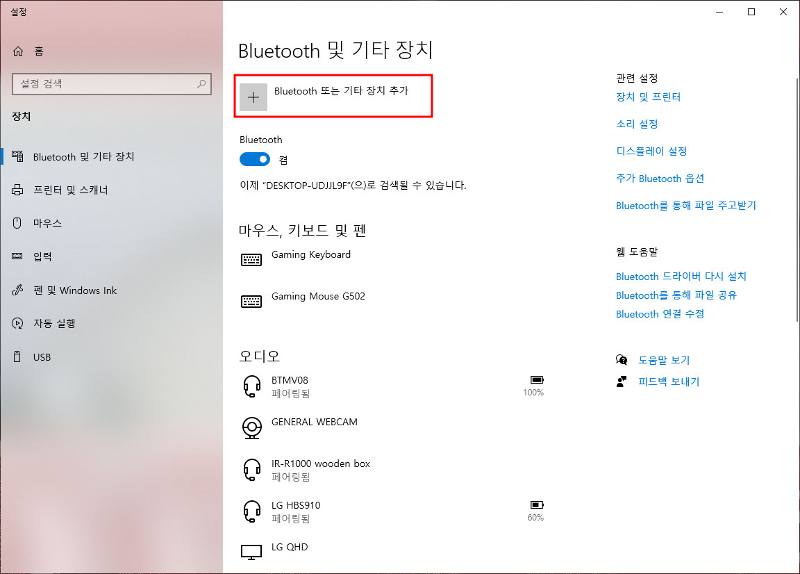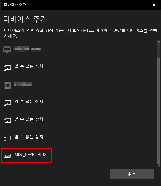 키 할당이 끝났으면 사용을 위해 블루투스 연결을 해 줍니다. (한 번만 페어링 해 두면 이후에는 자동연결 됩니다.)