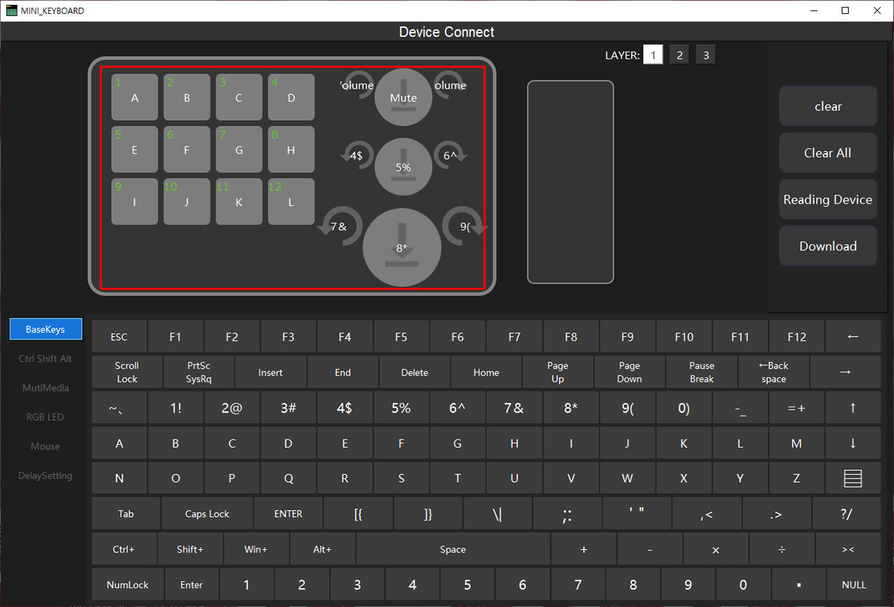 1번 레이아웃에는 포토샵에서 주로 사용하는 키를 설정했습니다. (3가지 등록 가능)