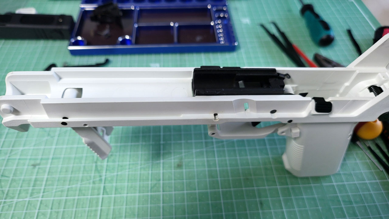 이제 FMG-9 본체에 해머그룹과 트리거바, 고정레치 등을 장착해 줍니다.