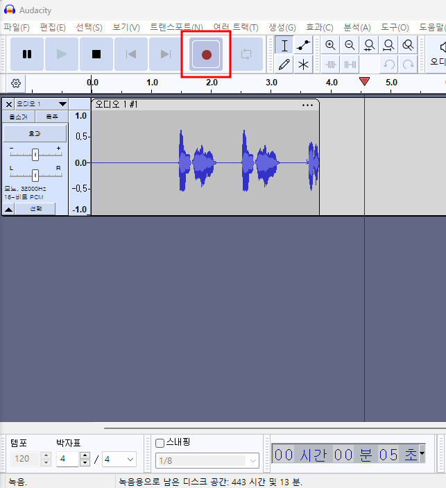 (앞뒤 무음구간을 나중에 삭제하면 되니까 급하게 버튼을 누르려하지 않아도 됩니다.)