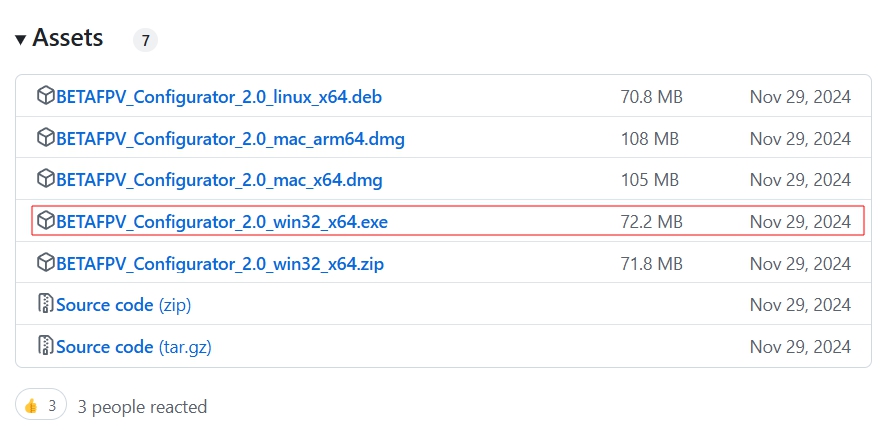 - 깃허브에서 BETAFPV Configurator 최신버전을 다운로드합니다.